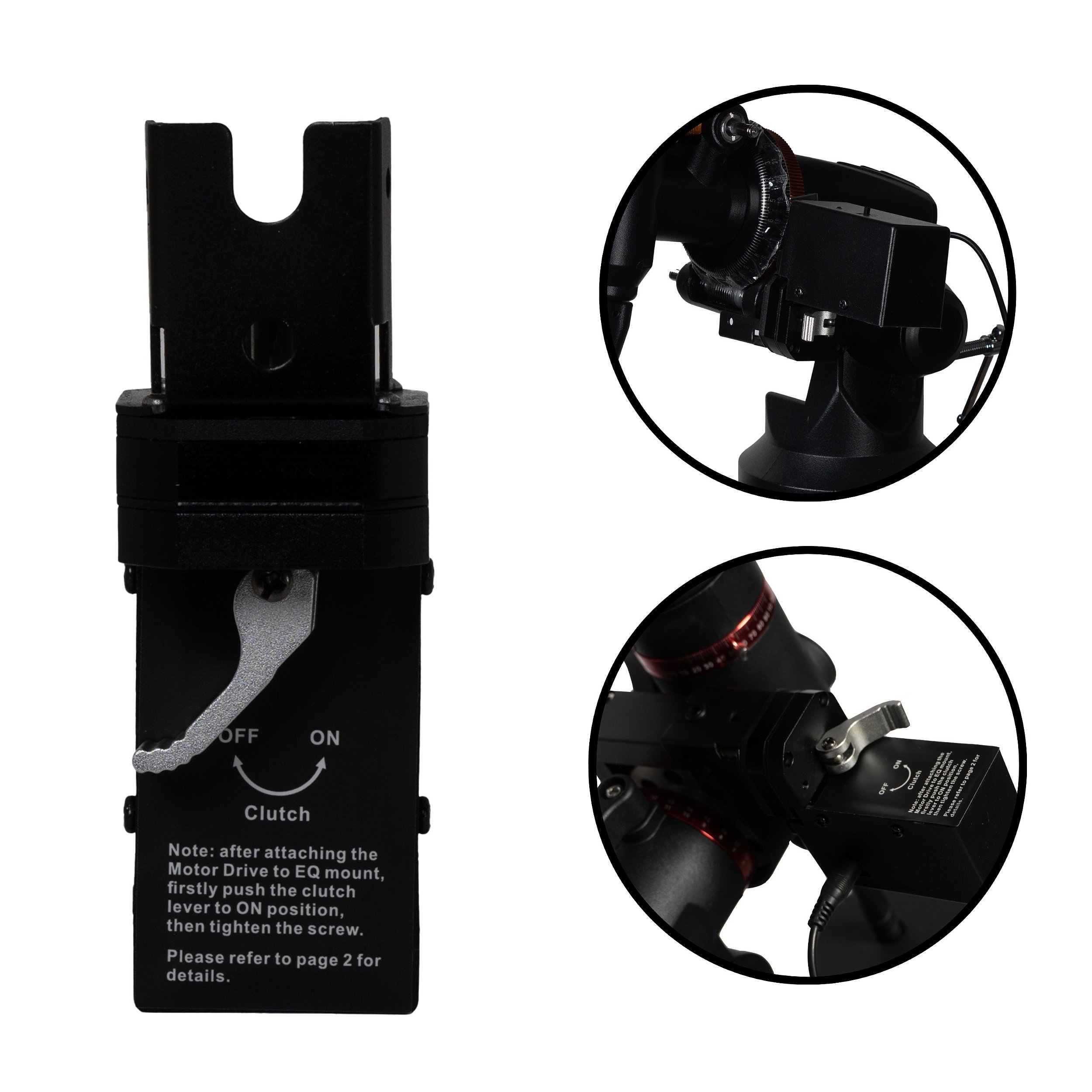 Produto indicado para telescópios com montagem equatorial compatível. Trata-se de um motor simples, desenvolvido para rastreamento contínuo, sem funções avançadas de múltiplas velocidades.